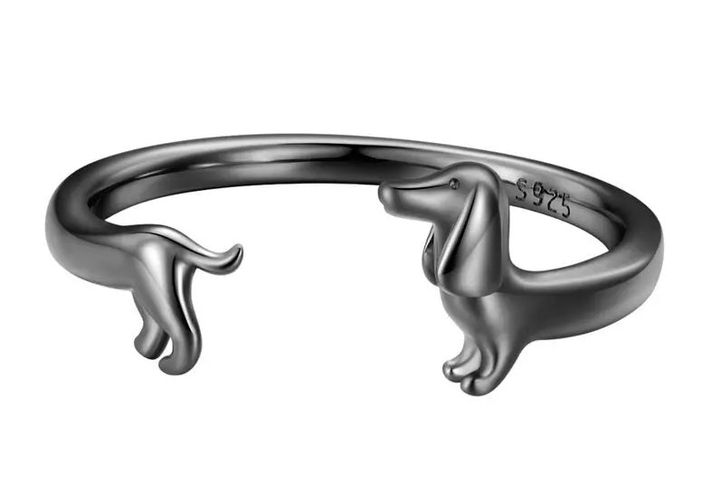 Black Colour Dachshund Adjustable Ring - 925 silver