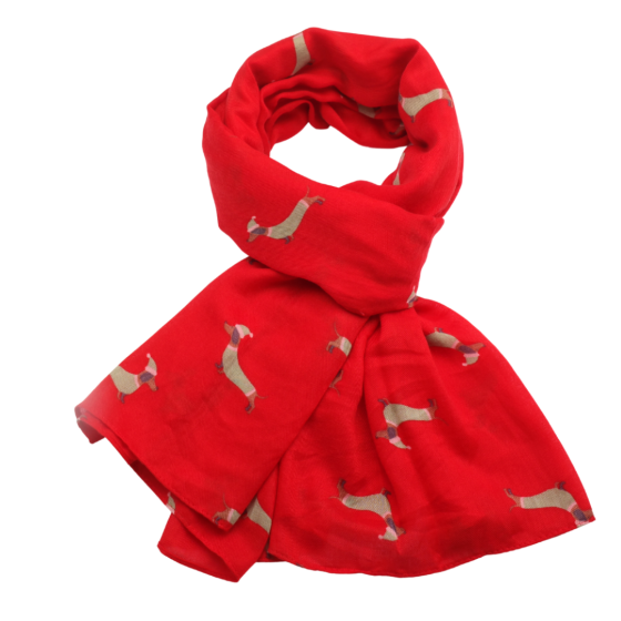 Measuring 185 x 90cm, this scarf is generously sized for versatile styling — wear it as a wrap, loop, or shawl. Made from 100% soft polyester and weighing just 110 grams, it's comfortable, breathable, and ideal for layering during the holiday season. Each scarf comes individually packaged, making it a thoughtful and easy gift for dog mums, dachshund dads, or anyone who loves festive fashion with a canine twist.