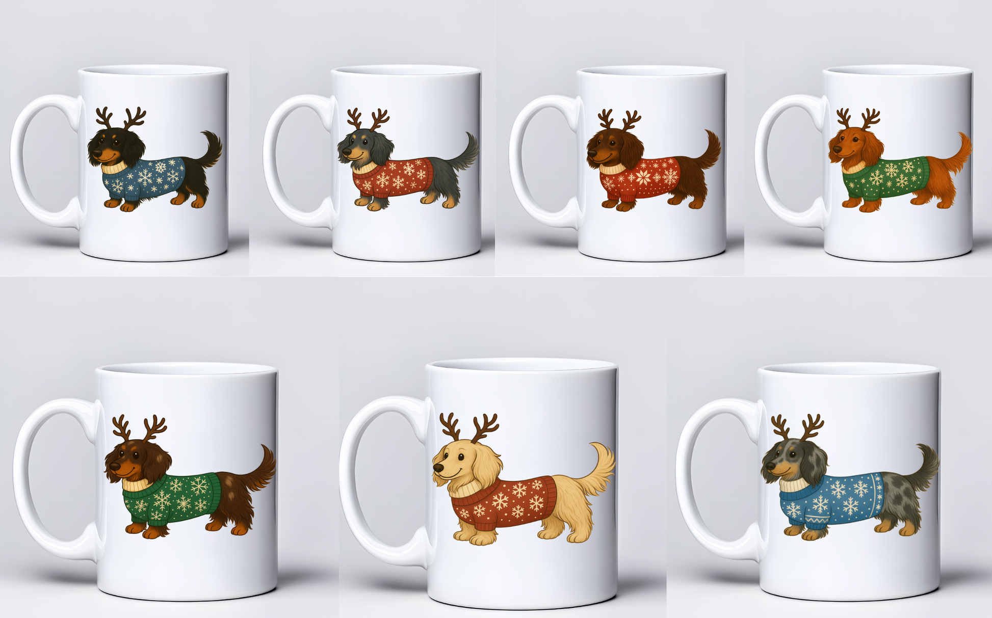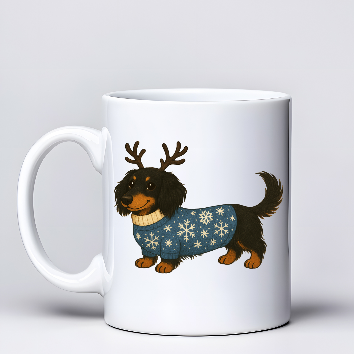 Make every cuppa extra merry this Christmas with our Long Haired Dachshund Christmas Mugs! π πΆ Each one features your choice of beautiful long-haired dachshund, all wrapped up in festive spirit β wearing their cosy Christmas jumper and reindeer antlers π¦β€οΈ