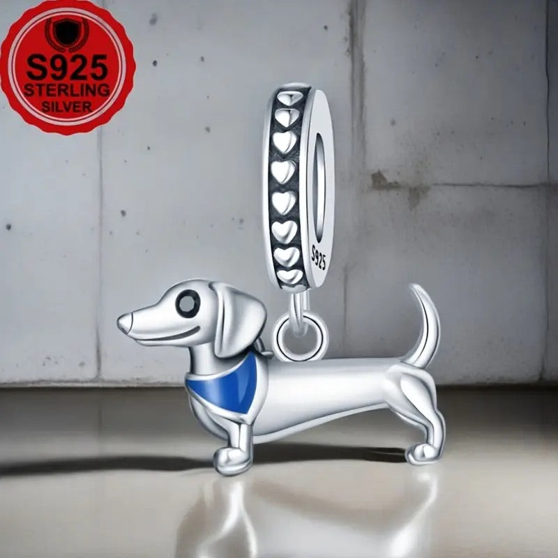 New Dachshund with Blue Bandana Charm - 925 Sterling Silver